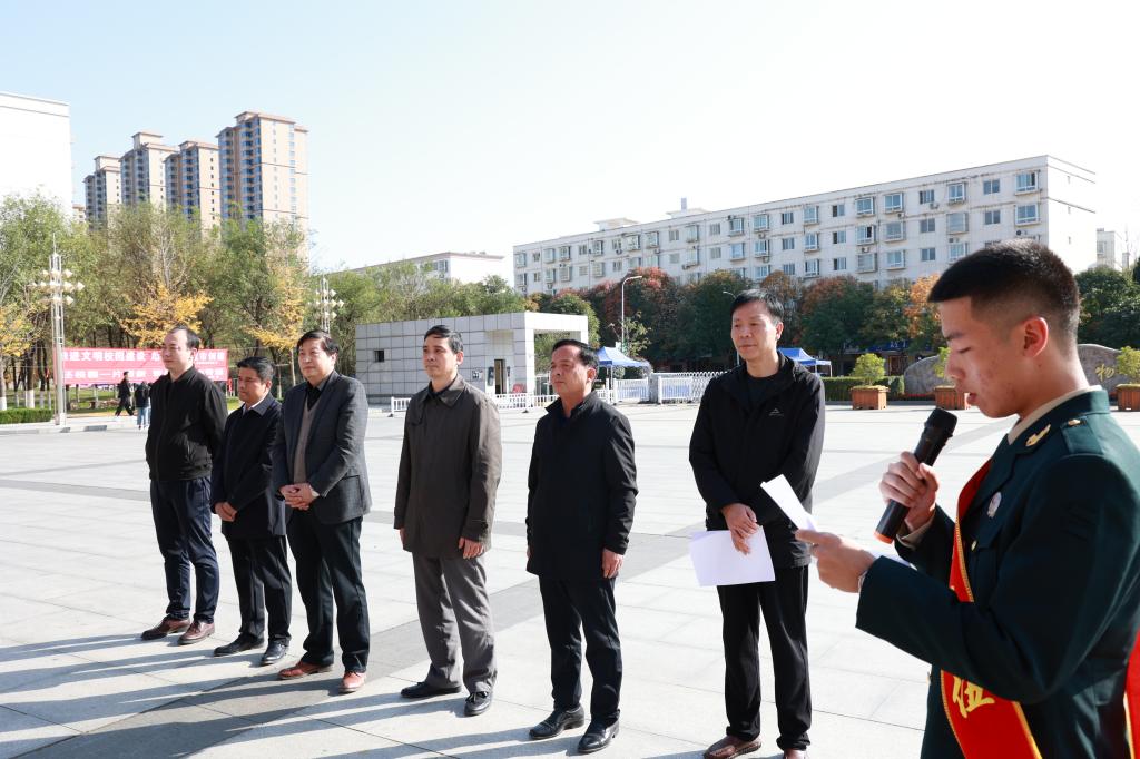 11月6日下午,我校在南校区醒钟楼前举行2020年退役复学大学生欢迎仪式。副校长祝战斌,示范区退役军人事务局副局长夏耀辉,学校人武部、学生处、团委负责人,以及2020年88名退伍复学大学生参加了仪式。