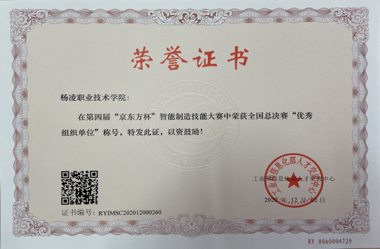 12月11日由工业和信息化部人才交流中心和京东方科技集团股份有限公司主办,北京智芯国信科技有限公司承办的第四届“京东方杯”智能制造技能大赛落下帷幕,我校荣获二等奖1项、三等奖3项,并获大赛优秀组织奖。