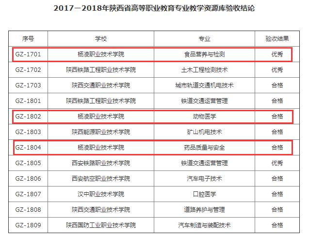 2017—2018年陕西省高等职业教育专业教学资源库验收结果,我校主持的食品营养与检测、动物医学、药品质量与安全等3个专业教学资源库顺利通过验收。其中食品营养与检测专业教学资源库的验收结果为“优秀”、动物医学专业教学资源库和药品质量与安全专业教学资源库的验收结果均为“合格”。