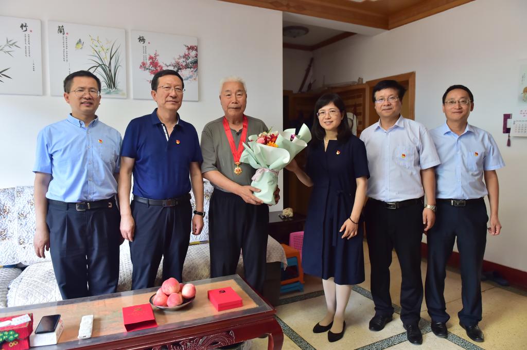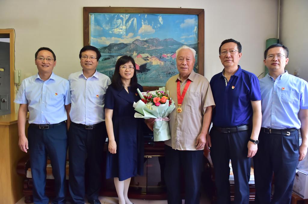 77日,校党委书记陈宁、副书记任得元走访慰问我校“光荣在党50年”老党员,为他们送去组织的温暖与关怀,颁发“光荣在党50年”纪念章。党委委员、组织部部长田争运,党委委员、党政办公室主任张朝晖,工会、离退休工作处董育公参加慰问。