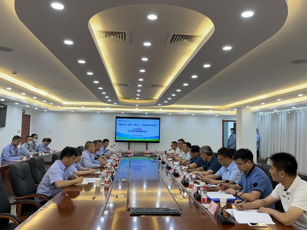 726日,我校与新疆天业集团校企合作揭牌暨签约仪式在新疆石河子市举行。校长王周锁出席仪式与新疆天业集团签署天业水利学院校企合作协议并揭牌。新疆天业集团党委副书记、总经理周军,人力资源副总监张新程,纪委书记张艳玲,以及我校水利工程学院、机电工程学院、生物工程学院相关负责同志参加了签约和揭牌仪式。