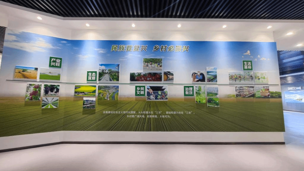 科技惠农展厅整体色调明亮,主要突出科技感和现代感,通过现代农业技术、农科杨凌、乡村振兴组图等展示,使广大师生坚定学农爱农、强农兴农的信心,立志为农业农村现代化和农民增收致富贡献力量。