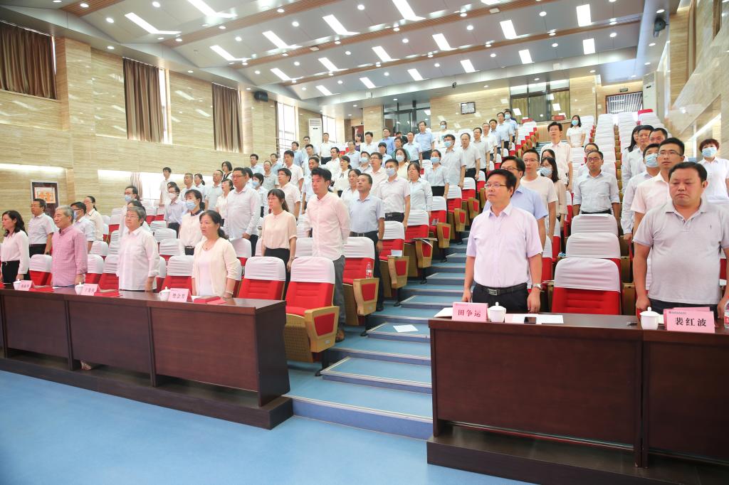 大会采取网络直播形式进行,其他教职工在各部门(单位)会议室同步观看了大会。