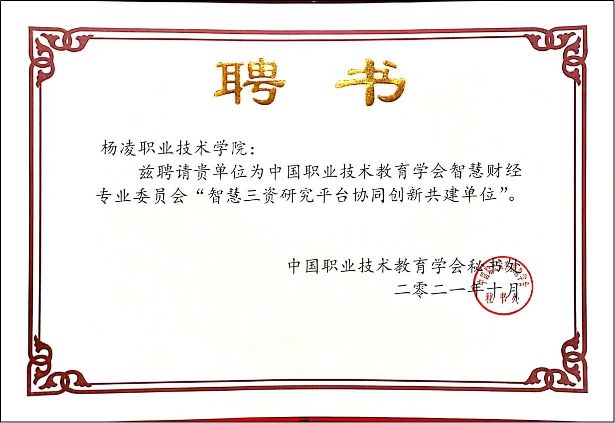 10月15日,中国职业技术教育学会智慧财经专业委员会2021年年会在北京召开,会议为专委会“智慧三资研究平台”揭牌,为专委会首批“协同创新共建单位”颁发聘书,我校成为专委会首批“智慧三资研究平台协同创新共建单位”。