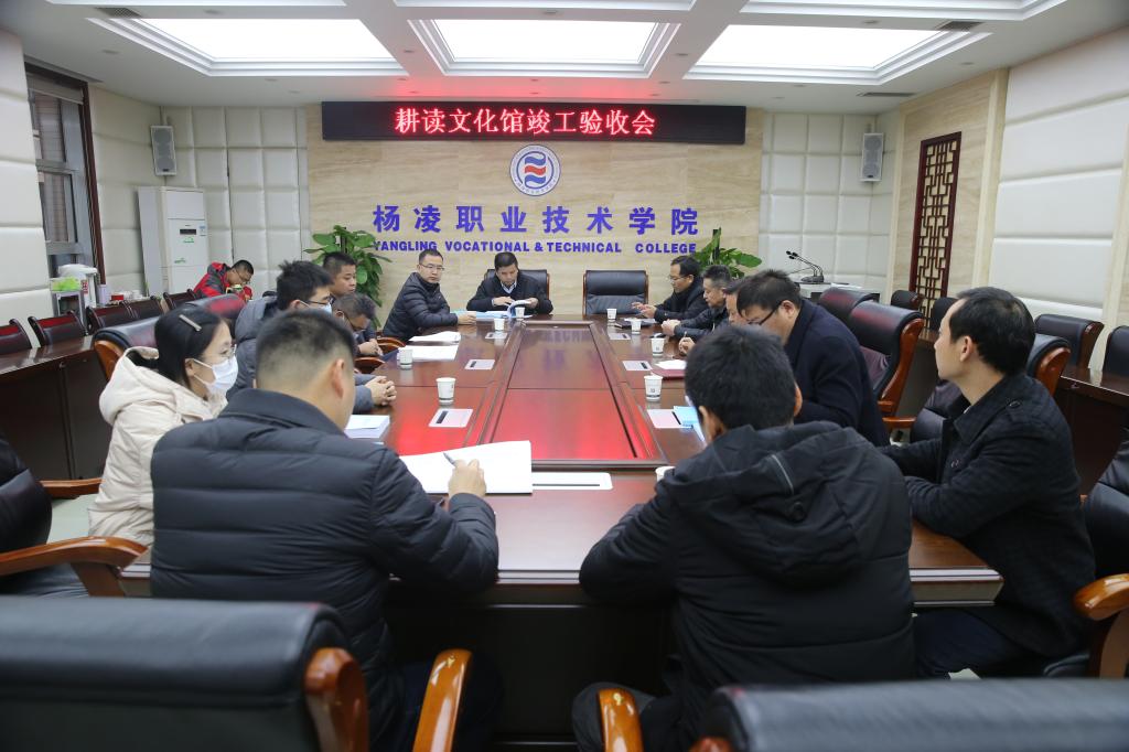 12月10日下午,耕读文化馆项目竣工验收会在南校区举行。党委委员、党委宣传部部长裴红波,财务处处长邹剑,基建处处长魏天儒,资产设备处处长高歌,纪委监督检查室、党委保卫部、审计处、招投标处等部门相关工作人员,以及陕西万象灵动环境艺术有限责任公司项目负责人、永明项目管理有限公司代表共同参加验收工作。