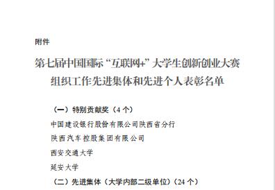 学校荣获第七届“互联网+”大赛组织工作先进集体
