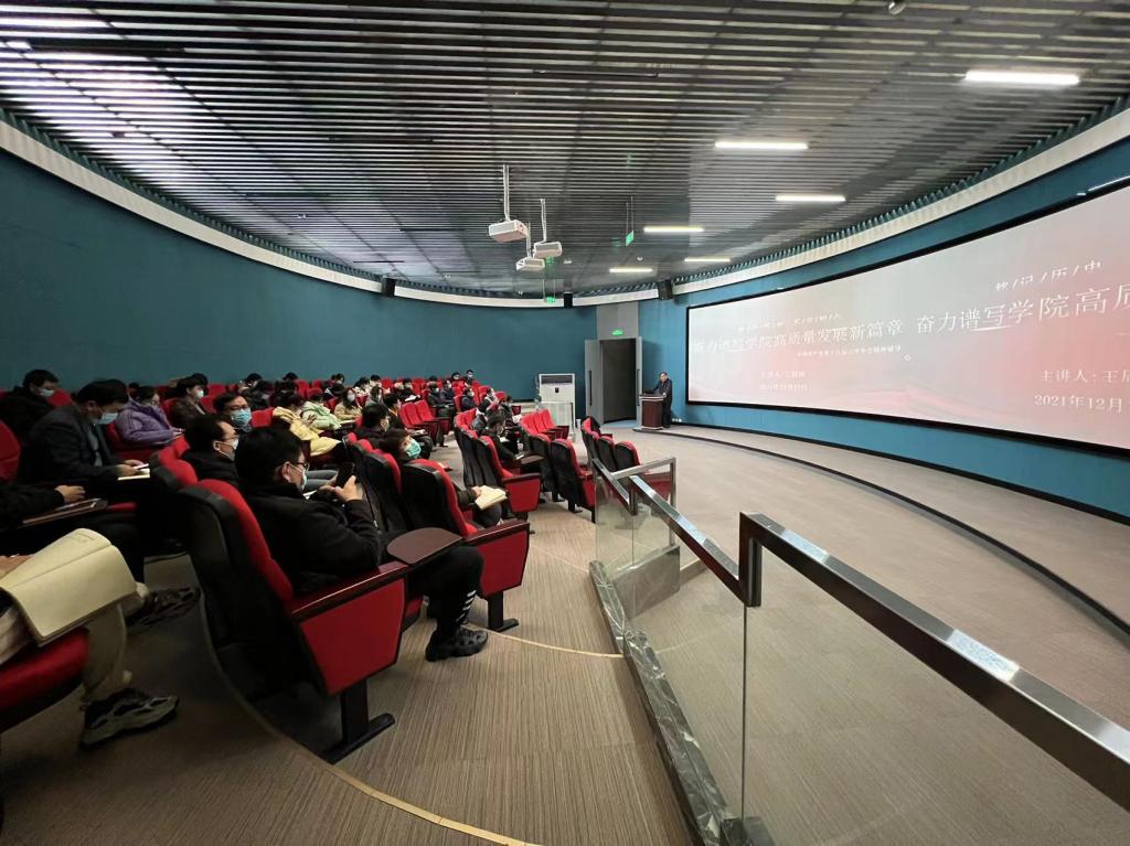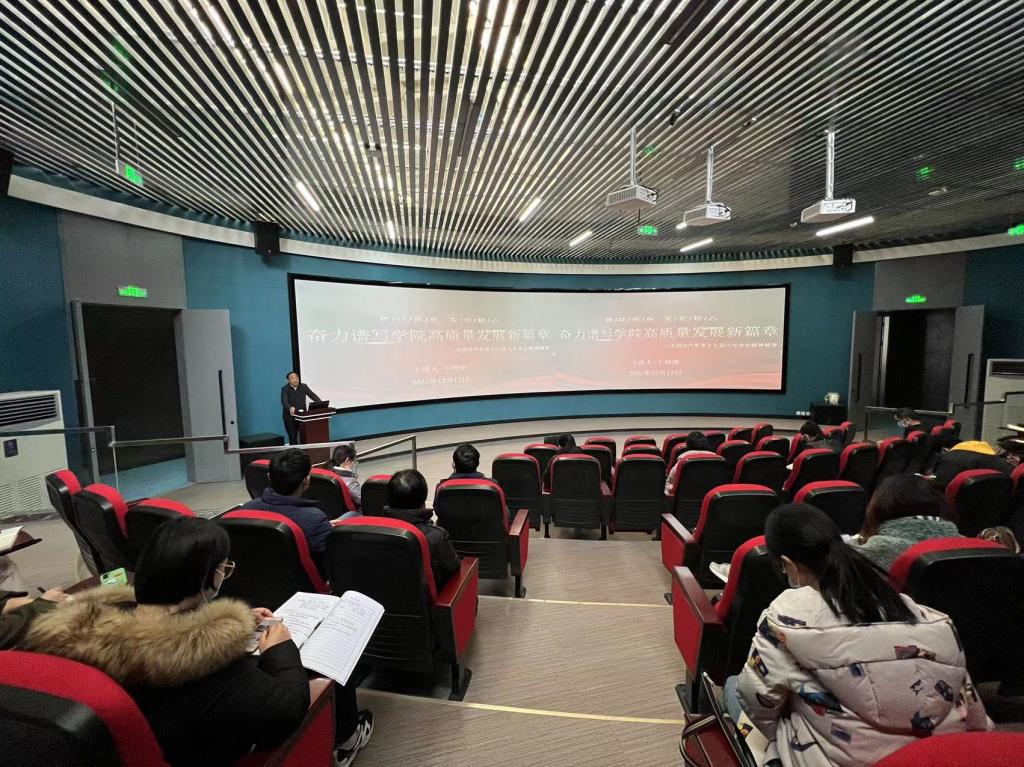 1217日下午,校长王周锁以"铭记历史、不忘初心,奋力谱写学院高质量发展新篇章"为主题,在南校区云实训中心为教职工讲了一次“学习党的十九届六中全会精神”专题党课。水利工程学院、信息工程学院党总支委员、党支部委员以及党员代表聆听了此次党课。
