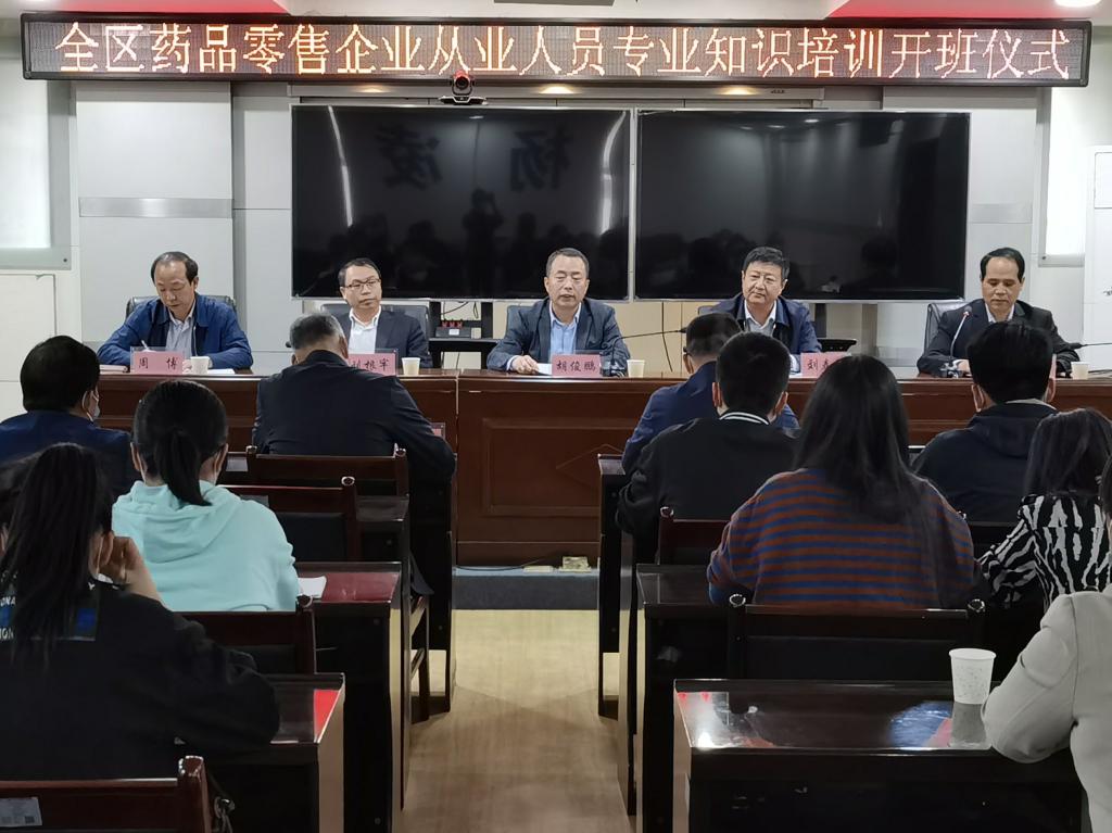 4月22日下午,杨凌示范区药品零售企业从业人员专业知识培训班开班,副校长胡俊鹏、杨凌示范区市场监督管理局党委书记刘春阳出席,药物与化工学院党总支书记刘根牢、院长周博,杨凌示范区药店负责人、执业药师以及部分教师代表参加仪式。仪式由杨凌示范区市场监督管理局副局长安兴国主持。