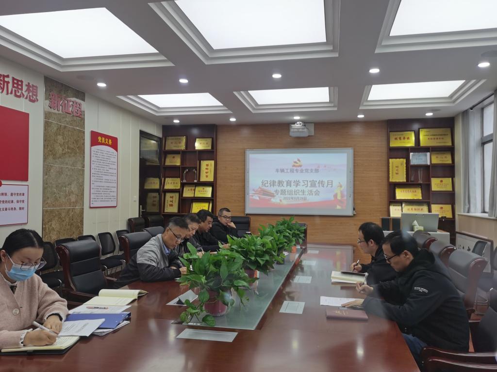 9月29日下午,机电工程学院车辆工程专业党支部召开了纪律教育宣传月专题组织生活会,副校长祝战斌、机电工程学院党总支书记马秀魁以普通党员身份参加会议。