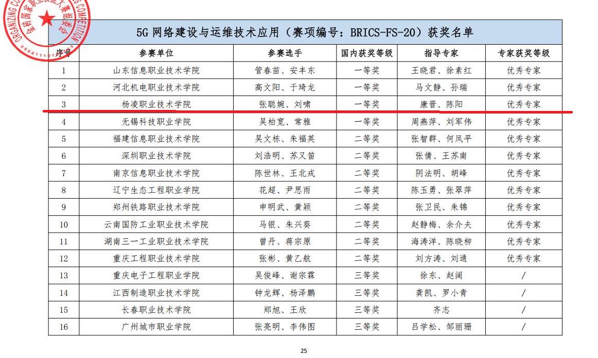 11月6日,2022金砖国家职业技能大赛在福建厦门落幕,我校信息工程学院学生刘啸、张聪婉获“5G建设与运维技术应用”赛项一等奖。