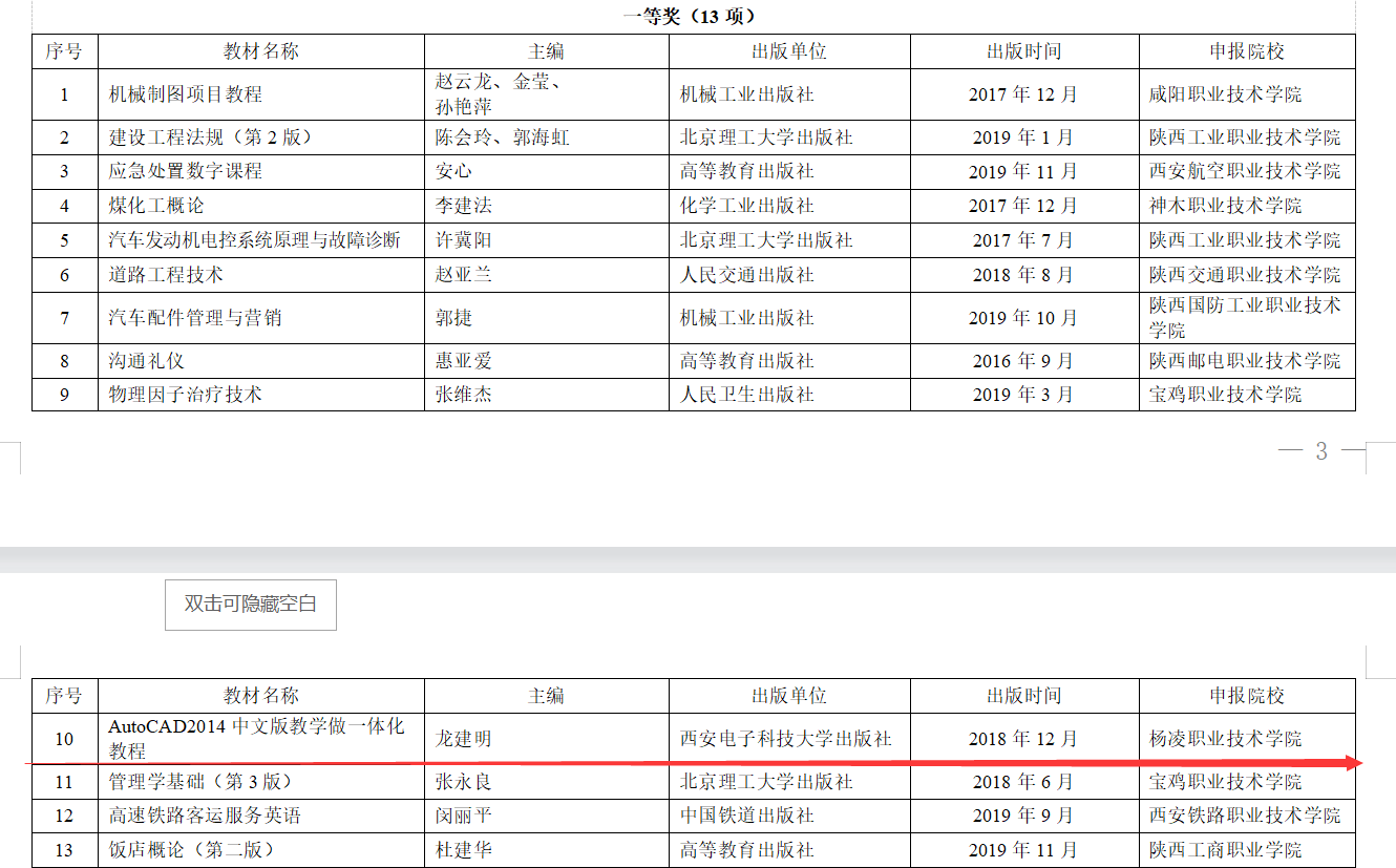 2月13日,陕西省教育厅公布了2022年职业教育和高等教育优秀教材获奖名单,我校有2部教材获奖。其中,张军平副教授编写的《审计基础与实务》获职业教育类特等奖,龙建明教授编写的《AutoCAD2014中文版教学做一体化教程》获职业教育类一等奖。
