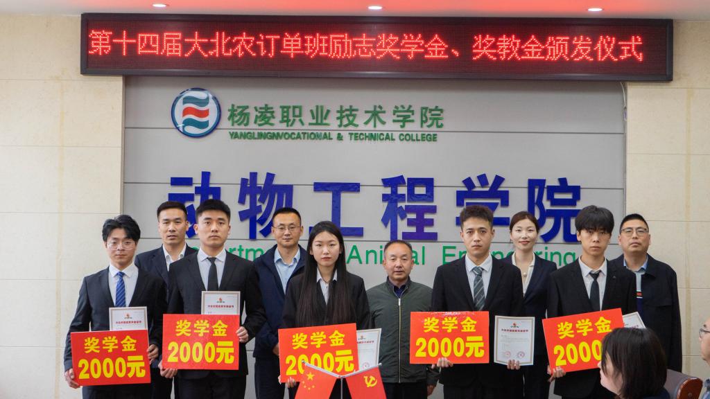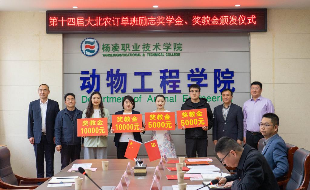4月12日,学校“大北农”奖教金发放仪式在林和楼131会议室举行。党委副书记、纪委书记王勇胜,大北农集团陕西区总裁宋安石,动物工程学院党总支书记张涉、副院长李龙及获奖师生代表和大北农订单班学生共50余人参加。