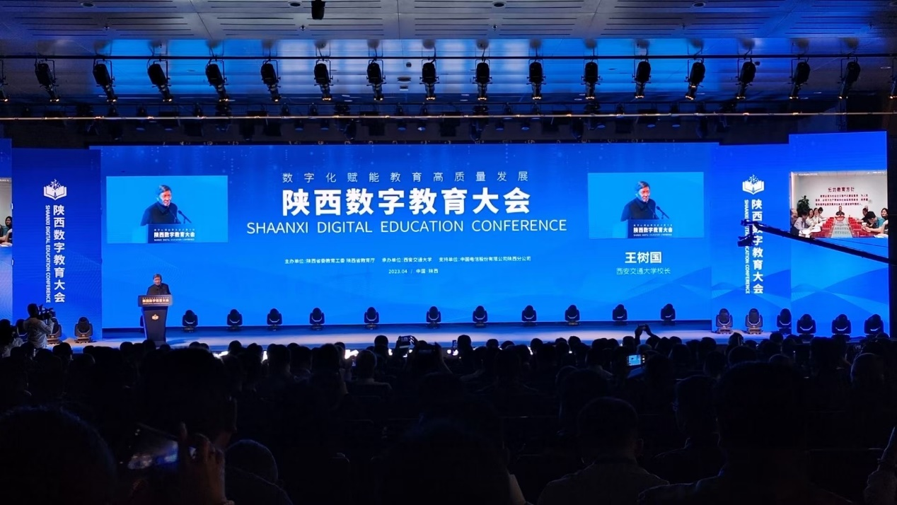 4月20日,由省委教育工委、省教育厅主办,西安交通大学承办的“陕西数字教育大会”在西交大创新港校区举行,会议以“现场+云端”相结合的形式进行。教育部科技与信息化司副司长舒华、西安交通大学校长王树国出席会议并致辞;省委教育工委副书记、省教育厅厅长王树声主持会议我校副校长蒋平江、信息化建设与管理处处长夏浩军等到现场参加了活动
