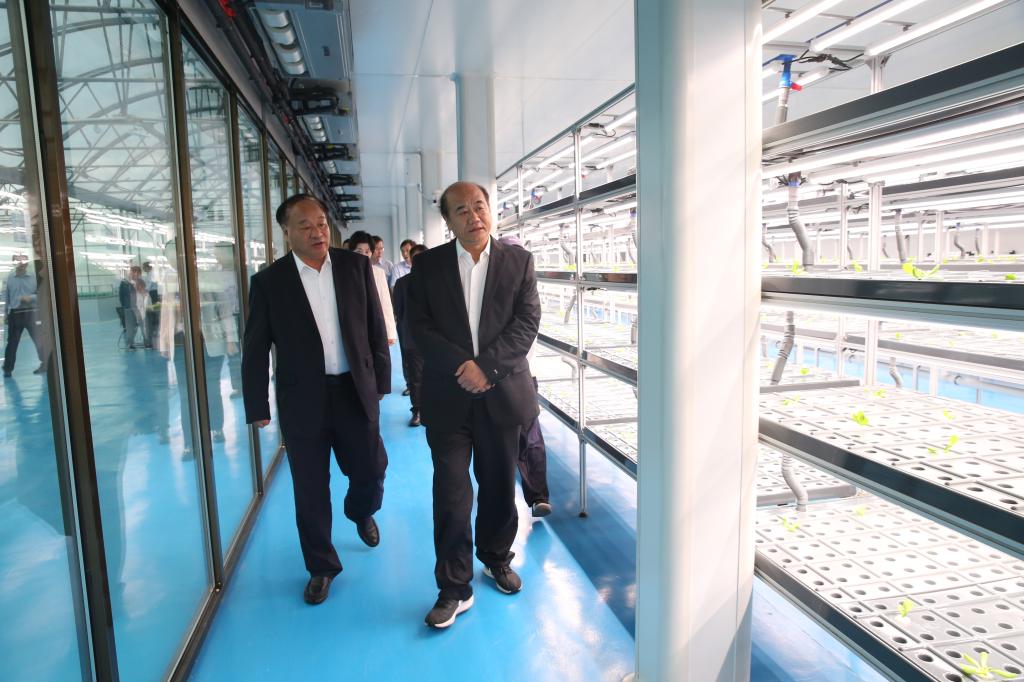 在农林综合实训基地智慧农业工厂,刘建林参观了植物育苗工厂和科研成果展示柜,对我校近年来在科研方面取得的成果表示肯定。他表示,学校要加强校企合作,推动科技成果转化,提升职业教育服务产业发展的能力。