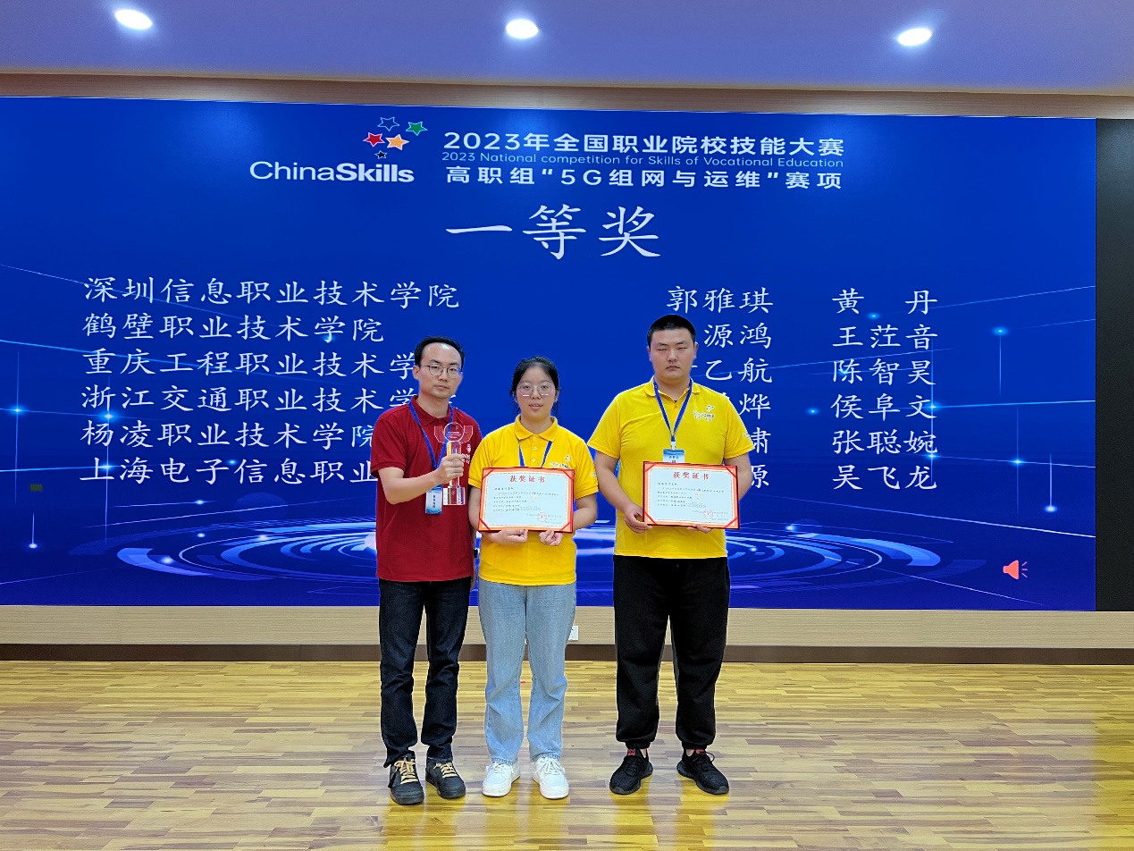9月22日至25日,2023年全国职业院校技能大赛高职组“5G组网与运维”赛项在上海电子信息职业技术学院举办,由我校信息工程学院刘啸、张聪婉同学组成的代表队荣获一等奖。比赛共有来自全国31个省、自治区、直辖市的60支参赛队伍,120名参赛选手汇聚上海同场竞技。