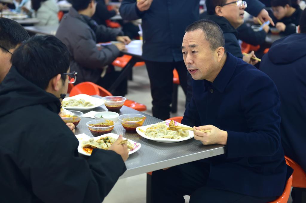 党委副书记、纪委书记王勇胜与学生一起吃饺子
