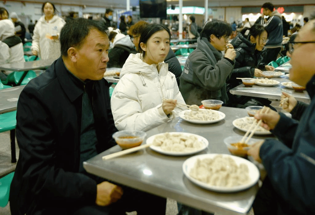 南校区餐厅学生们正在吃饺子