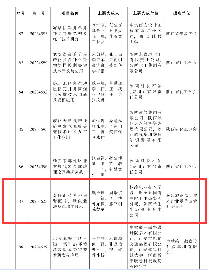 近日,陕西省人民政府公布了2023年度陕西省科学技术进步奖评选结果,我校生态环境工程学院牵头、钱拴提教授主持申报的《秦岭山茱萸种质资源库、绿色栽培及深加工技术》项目获2023年度陕西省科学技术进步奖三等奖。