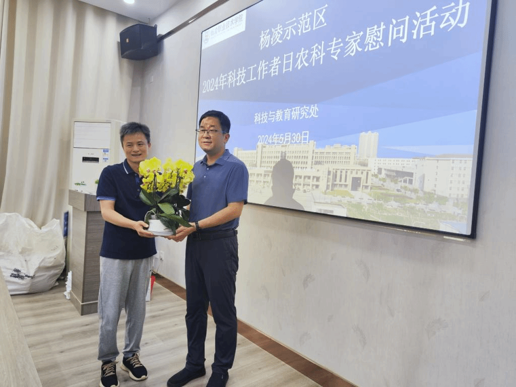 在第8个全国科技工作者日到来之际,杨凌示范区科技创新和转化推广局副局长唐伟一行来校慰问科技工作者代表。