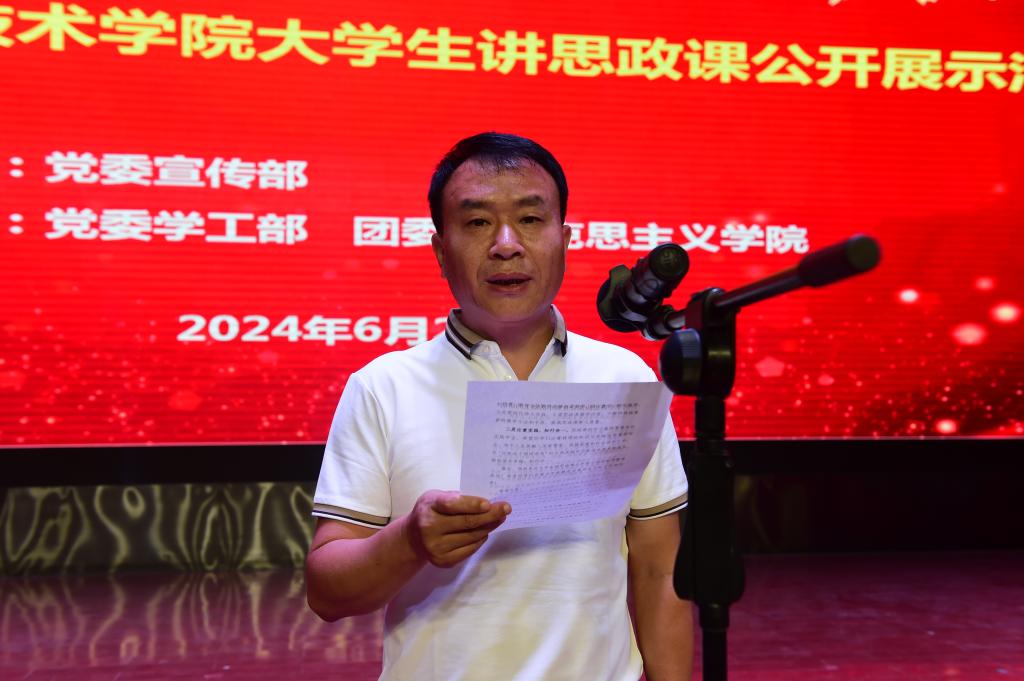 6月24日晚,学校举办以“新时代新气象 新青年新作为”为主题的大学生讲思政课公开展示活动。党委副书记、纪委书记王勇胜出席活动。党委宣传部、党委学工部、团委、马克思主义学院和各二级学院负责人、师生代表共计300余人参加活动。
