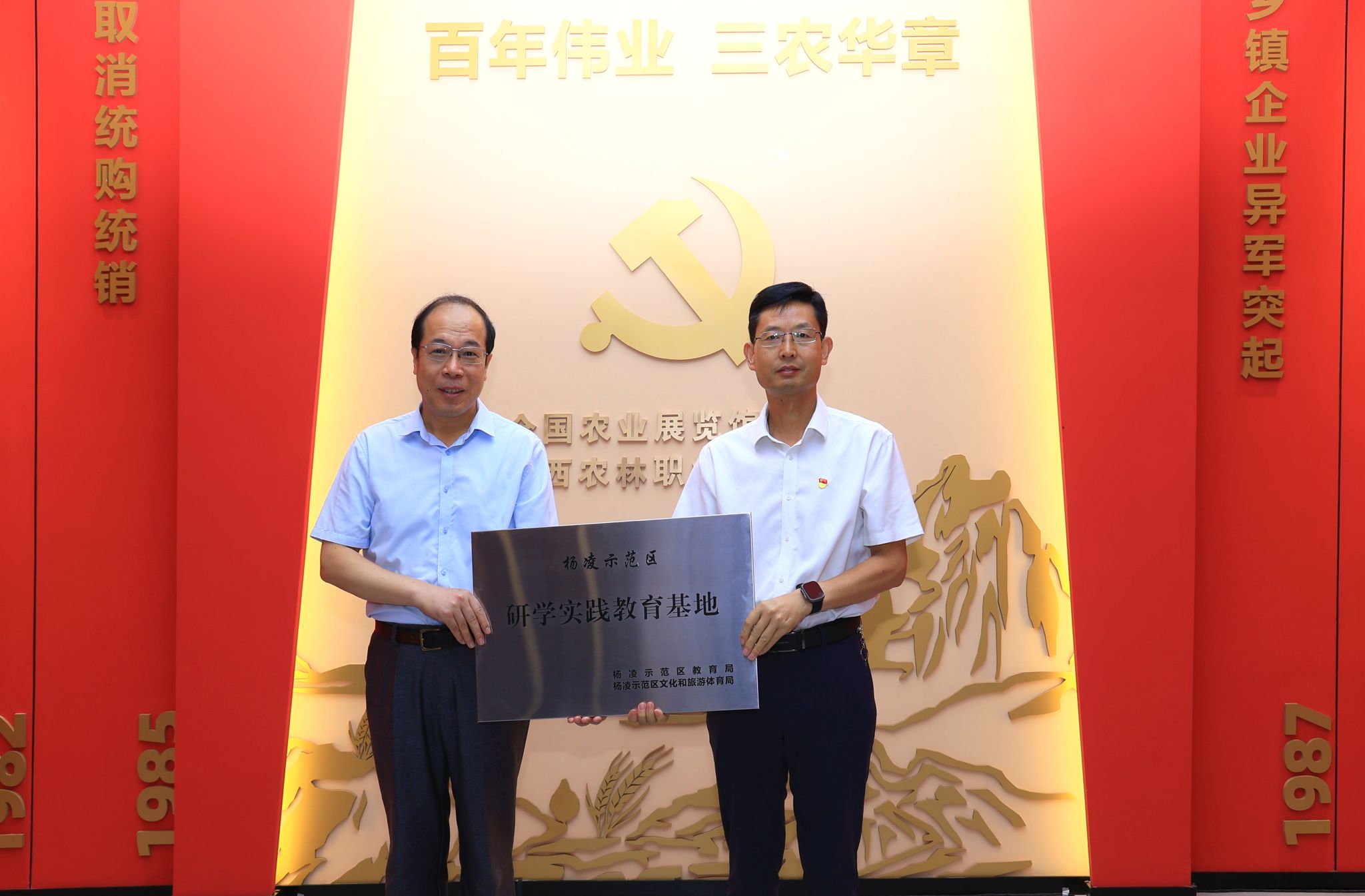 韩明军在致辞中指出,建设百年伟业·红色三农研学馆是学校深入学习贯彻习近平总书记关于“三农”工作重要论述的重要体现。他表示,学校将以研学馆为平台,教育引导广大师生深入了解中国共产党解决“三农”问题的光辉历程,厚植“三农”情怀,不忘初心使命,勇挑强农兴农重担。作为庆祝中国共产党成立100周年主题展巡展点、全省农村基层干部培训基地、杨凌示范区研学教育实践基地,研学馆将积极主动服务杨凌示范区发展,服务、辐射全省、全国旱区乃至全国党员干部、大中小学生的红色三农教育工作,凝聚更加强大的力量,为农业高质高效、乡村宜居宜业、农民富裕富足作出更大的贡献。