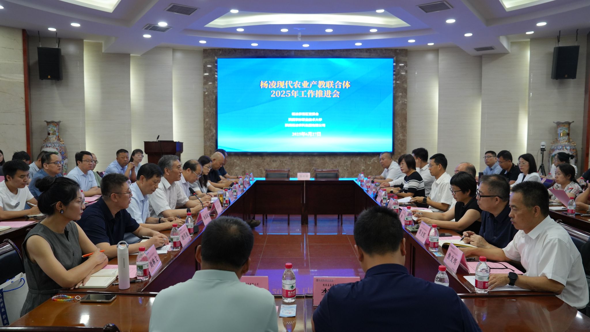 示范区科技局、共建融合办、陕西杨凌农科集团有限公司、杨凌示范区创新创业园发展有限公司负责人及学校相关部门、二级学院负责人及联合体内企业代表50余人参会。