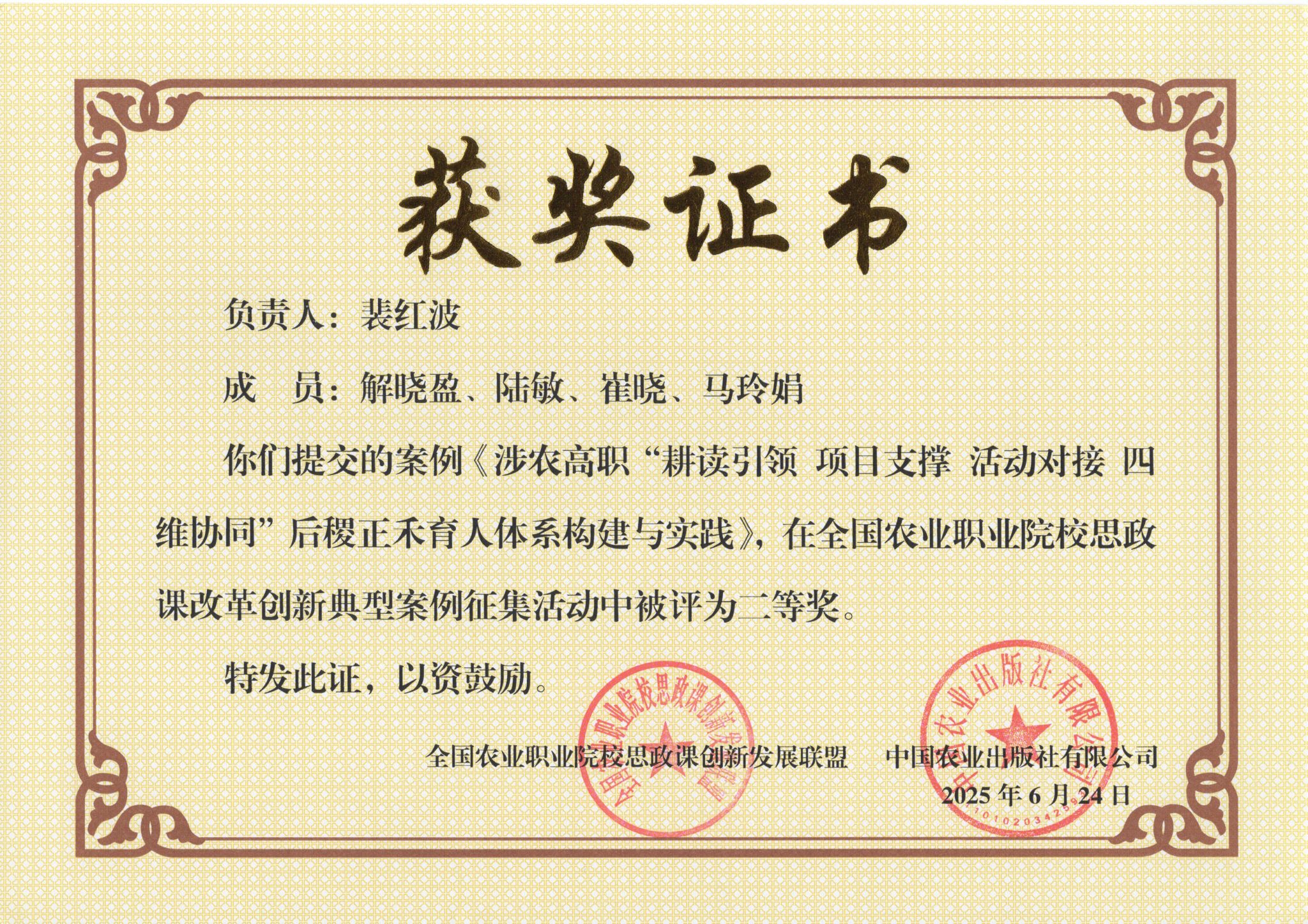 我校2项成果获全国农业职业院校思政课改革创新典型案例