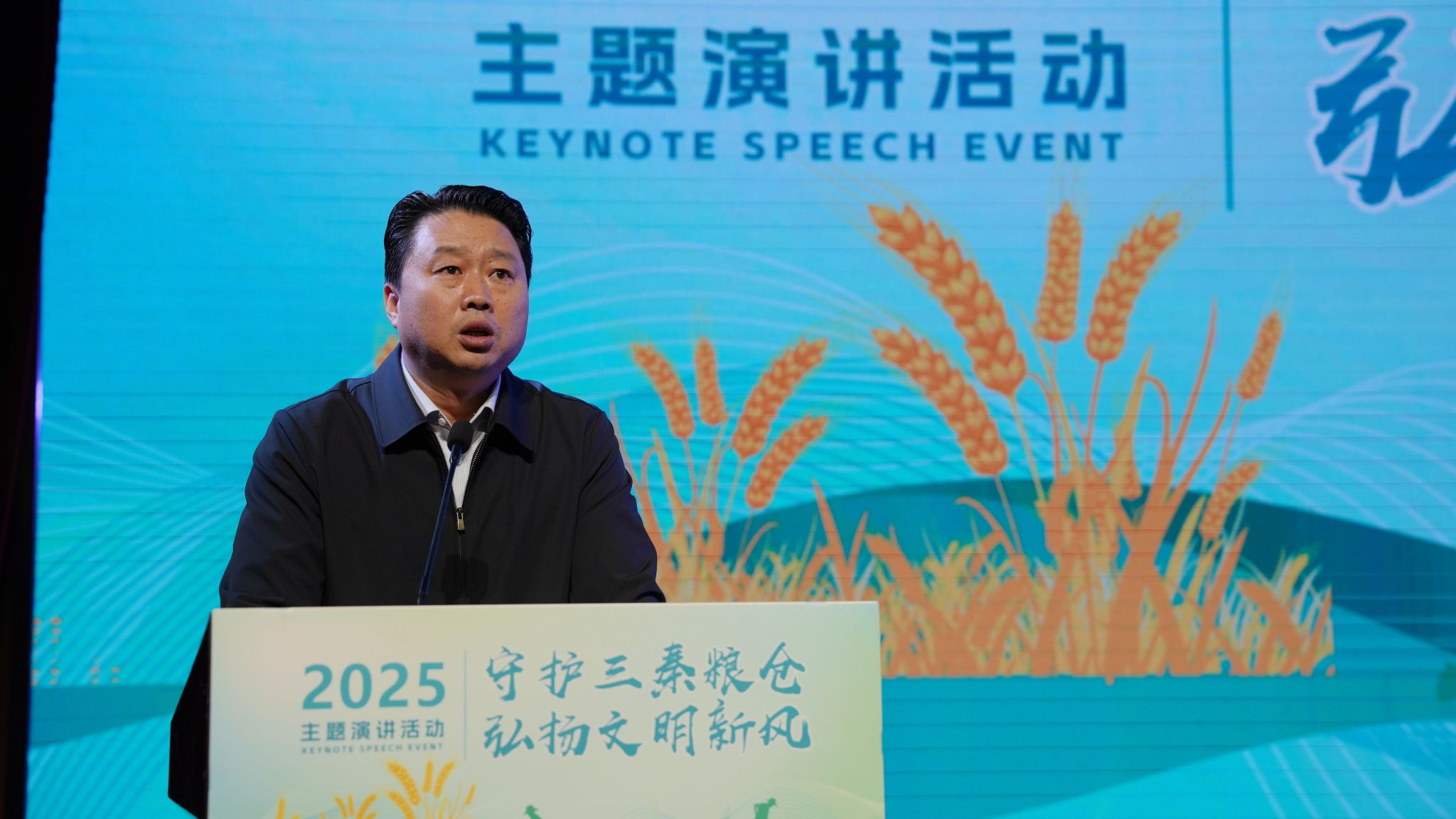 李育江在致辞中表示,举办“守护三秦粮仓、弘扬文明新风”主题演讲活动,就是要把粮储系统中立足平凡岗位、勤奋奉献、工作成效显著的先进典型挖掘出来,把他们的感人事迹和奋斗精神宣传推广出去,展示粮储人坚守初心、担当使命的精神风貌,激励全省粮储广大干部职工踔厉奋发、砥砺前行,吸引更多的社会力量关心、支持粮储事业。要唱响粮储人为党为民、忠实践行国之大者的最强音,唱响粮储人不忘初心、勇担使命、甘于奉献的正能量,唱响粮储人奋发作为、合力推进事业大发展的新风采。希望广大粮储人从中汲取智慧与力量,用更饱满的热情、更昂扬的斗志、更强大的合力推动粮储工作高质量发展。