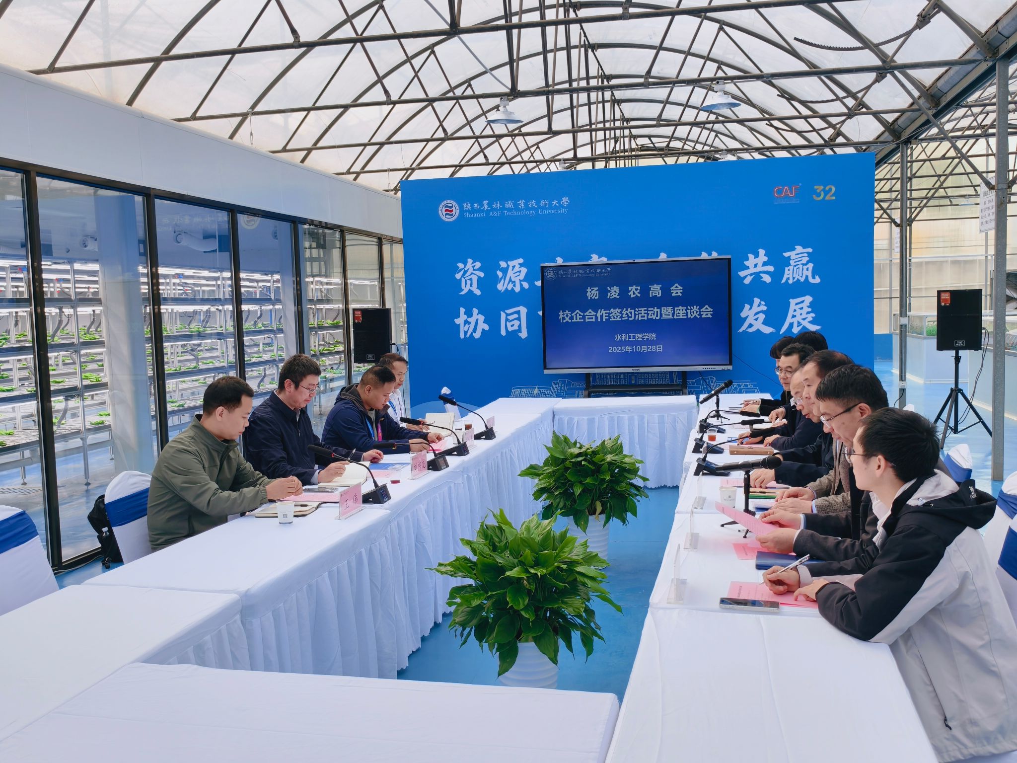 10月28日下午,水利工程学院在学校“农高会会客厅”举行校企合作签约仪式。校长仲伟周,深圳强泰自控阀门科技有限公司总监肖宁春、陕西天海水电工程有限公司总经理刘伟龙,水利工程学院负责人及相关教师、企业代表参加签约仪式。