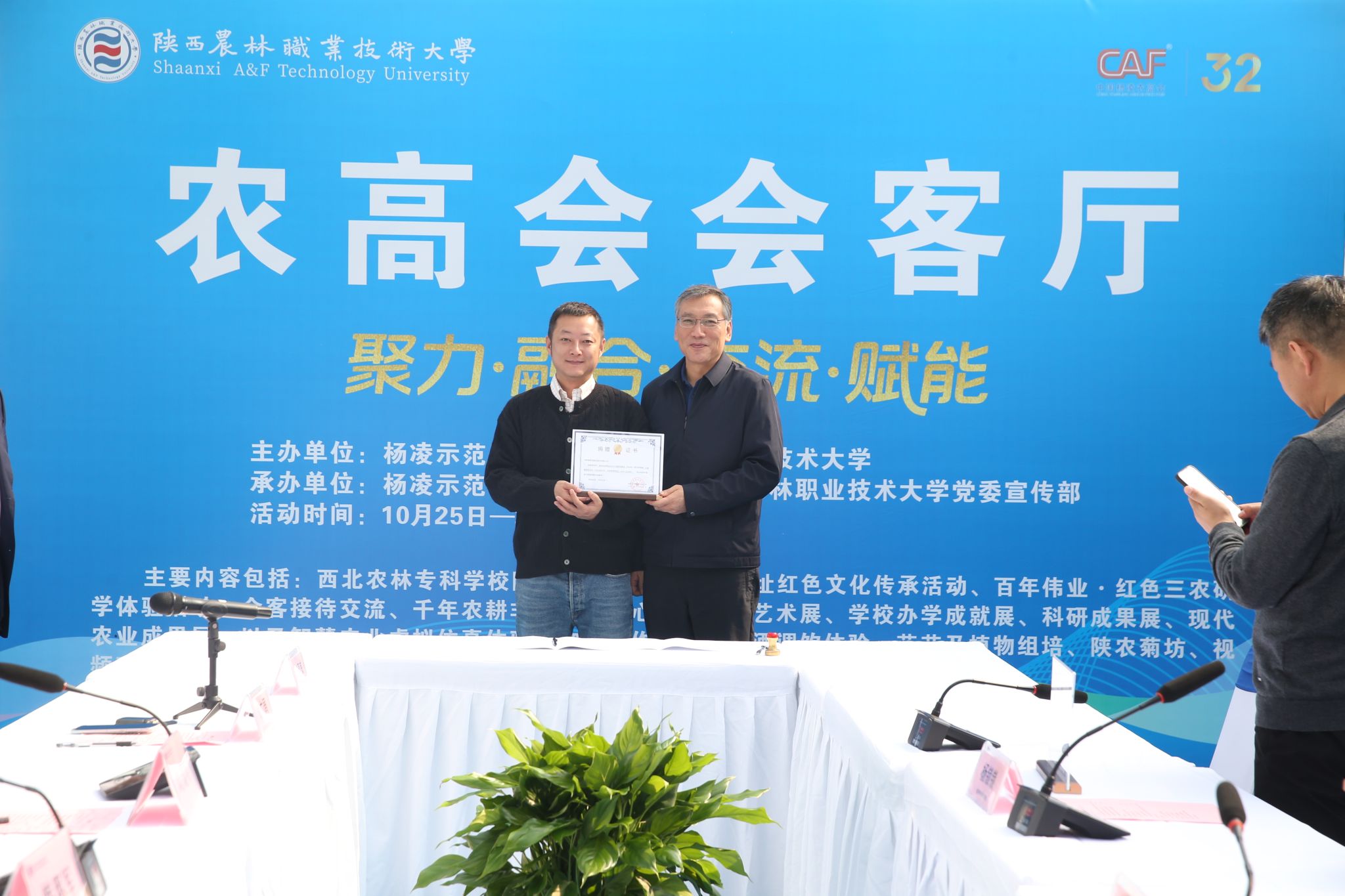 10月26日上午,学校在“农高会会客厅”举行企业捐赠仪式。党委书记韩明军,党委副书记刘瑞明,西北农林科技大学葡萄酒学院党总支书记郭建东,桥畔葡萄酒集团股份有限公司董事长侯江川、总工陈晓,杨凌澜悦铂莱酒店管理有限公司董事长杨锁锁、总经理罗杰,以及旅游与管理学院负责人等共同参加捐赠仪式。