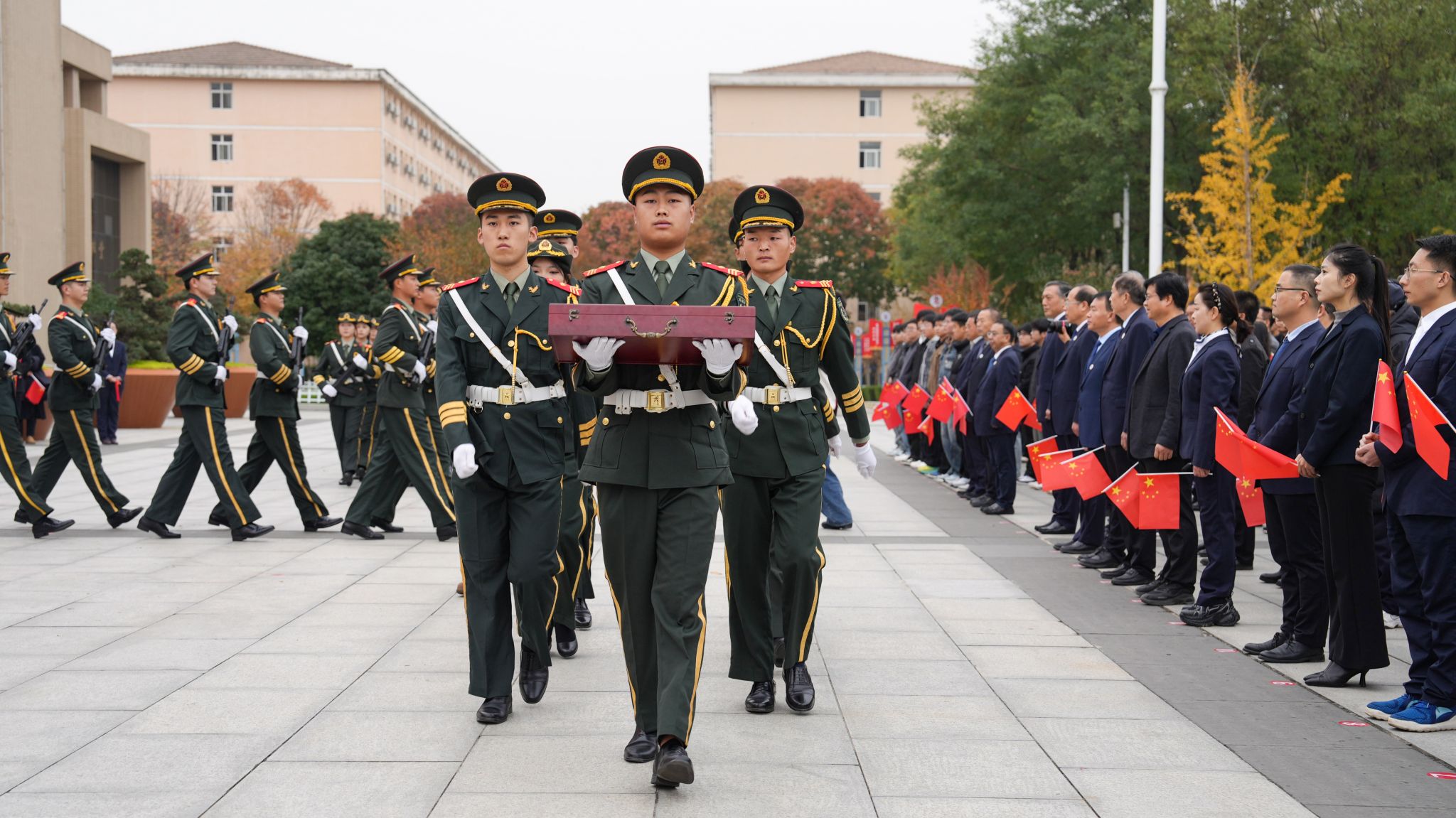 上午10时,仪式在雄壮的国歌声中正式开始。党委书记韩明军郑重宣读了由北京市天安门管理委员会颁发的获赠证书。他介绍,10月31日,北京市天安门管理委员会向学校赠送了2025年6月9日在天安门广场升挂的国旗。6月9日当天,天安门广场天气晴朗,风和日丽,该面编号为2025-0160的国旗,长5米,高3.3米,重1800克,整幅旗面无拼接,五颗五角星采用人工丝网印染工艺,于当天上午4时46分在天安门广场冉冉升起、迎风飘扬。国旗是国家的象征和标志,天安门广场升挂的国旗具有唯一性和特殊的历史价值,是蕴含特殊意义的爱国主义教育载体,承载着亿万中华儿女深厚爱国情怀。值得特别铭记的是,2025年6月9日也是教育部发文批准设立Beat365中文官方网站之日,获赠2025年6月9日在天安门广场升挂的国旗,是对学校办学91年最好的总结,也承载着国家对Beat365中文官方网站的殷殷期望,我们一定按照习近平总书记的嘱托,矢志强农报国,努力培养更多知农爱农的专业人才,为建设农业强国、推进中国式现代化作出新的贡献。