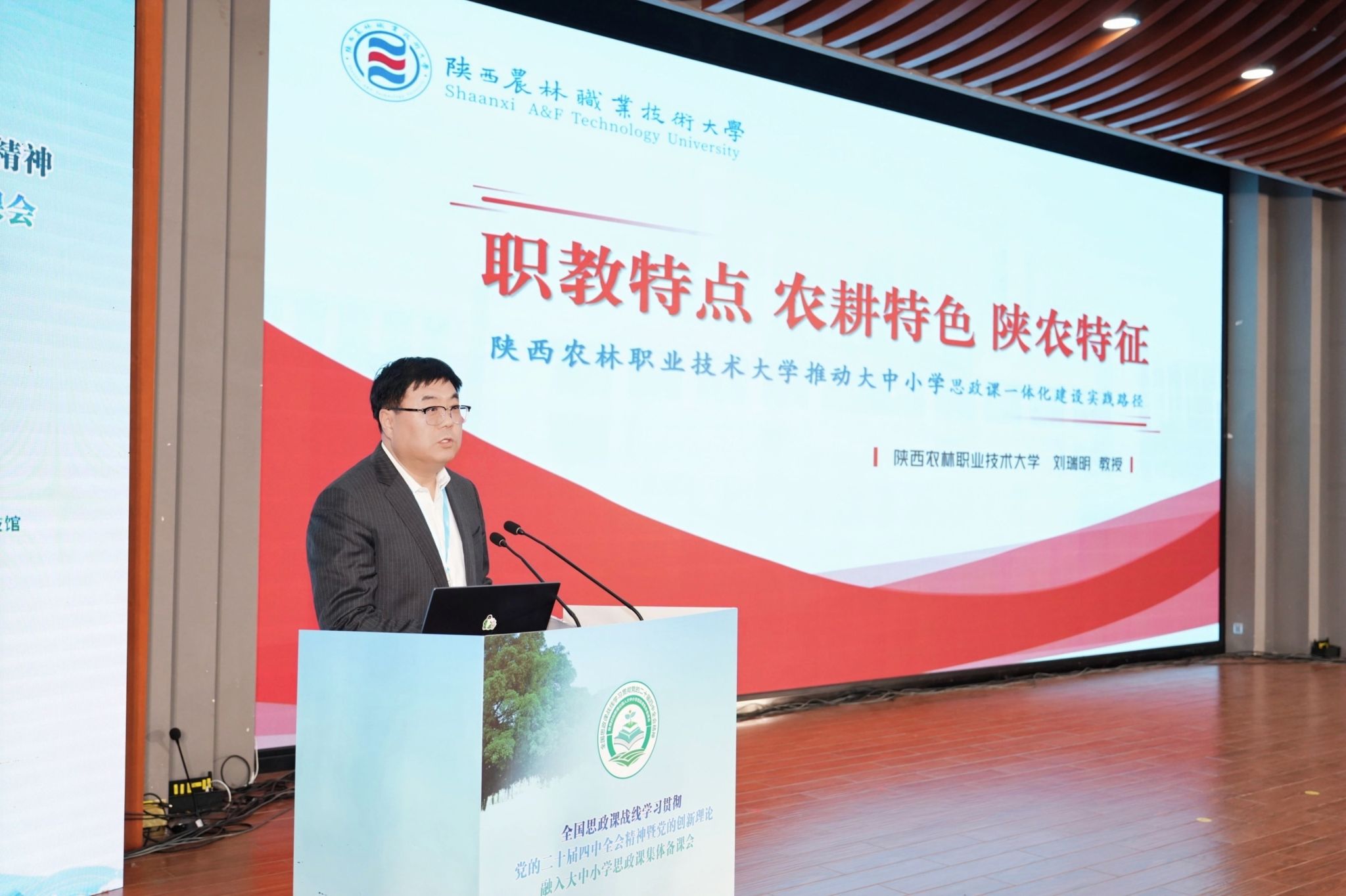 刘瑞明以《职教特点 农耕特色 陕农特征——Beat365中文官方网站推动大中小学思政课一体化建设实践路径》为题,介绍了学校立足职业教育类型特征和农耕文化特色、探索大中小学思政课一体化创新路径的思路,并从注重协同联动,牵头组建一体贯通两大平台;挖掘各类资源,打造“一址三馆”思政教育阵地;突出涉农特色,全面实施“后稷正禾育人”工程;丰富教学内涵,打造优质思政教学资源;强化各项保障,不断提升思政队伍能力水平等五个方面介绍了学校的主要做法,分享了学校在推动大中小学思政课一体化建设方面取得的经验与成效,并就进一步深化大中小学思政课一体化改革、培养更多强农报国高端技能人才提出建议思考,受到了与会领导、专家及兄弟院校代表的高度认可与广泛好评。