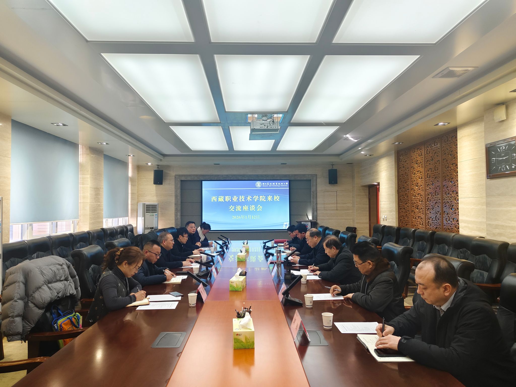 1月12日下午,西藏职业技术学院党委副书记、校长陈飞,副校长陈文青一行来校考察交流。校长仲伟周出席座谈会并讲话,副校长祝战斌主持会议。