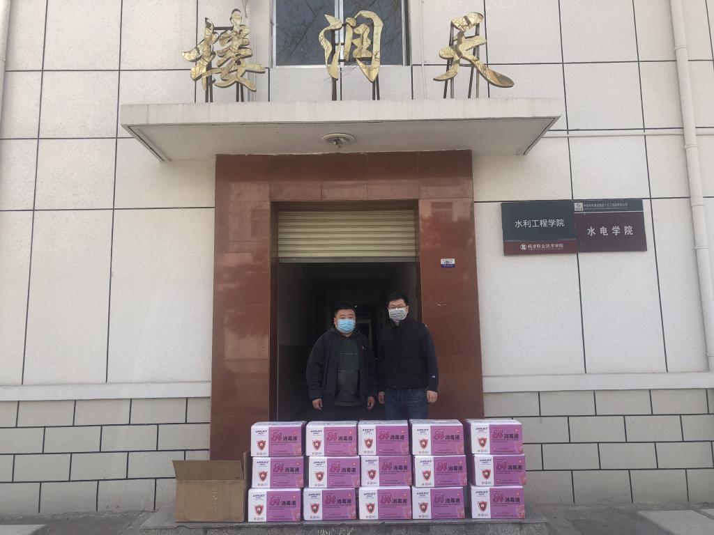 陕西国信地测科技有限公司由我院2007级水建53班校友朱显国创办,疫情发生以来,朱显国一直牵挂着分院师生的健康和安全,在得知防疫物资紧缺的情况后,主动联系老师把防疫物资捐赠给分院。目前,各分院正处于全力抗击疫情和开学各项准备工作中,朱显国的爱心之举缓解了学院物资压力,也将温暖和信心传递给了广大师生。