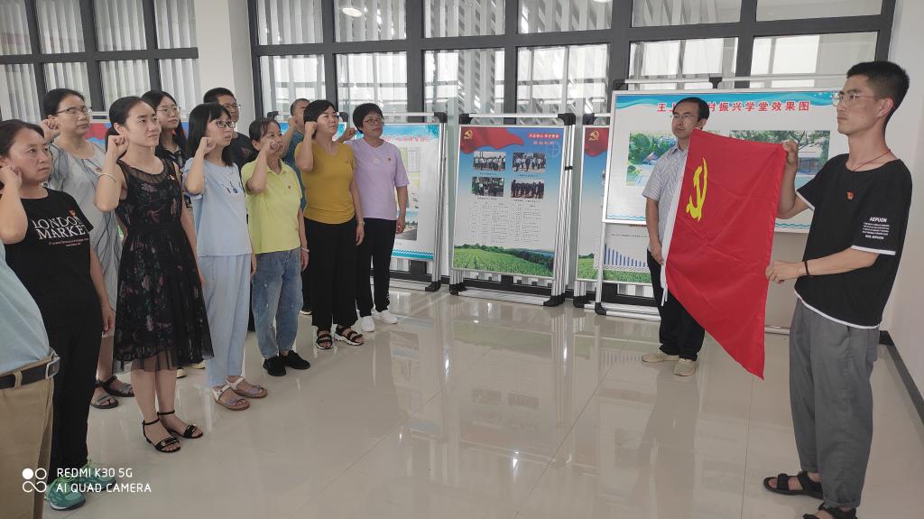 ——重温入党誓词。7月1日上午,文理分院全体党员开展“重温入党誓词”宣誓活动。全体党员自觉佩戴党员徽章,亮明身份,面对党旗,再次庄严宣誓,增强了党员意识和党性观念,强化了初心使命。宣誓之前,文理分院党总支书记陈化文以“缅怀光辉历史,牢记初心使命”为题讲了一堂微党课。