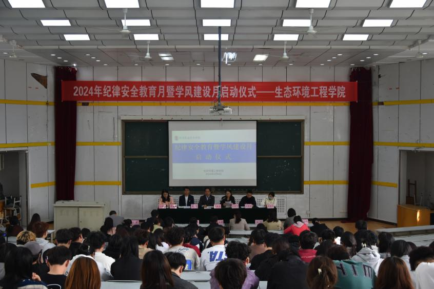 4月8日下午,生态环境工程学院在西校区台阶教室召开“强纪律 严作风浓学风 保安全”主题建设月活动启动仪式。院领导班子成员,党支部书记、教研室主任、学工办主任,全体辅导员、班主任、教职工代表,分团委、学生会干部,各班班长、书记、舍长及全体学生党员等200余人参加会议。