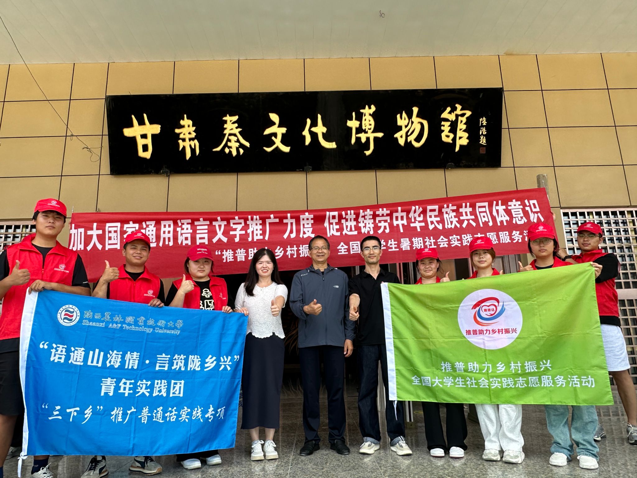 以语言文化激活乡村发展动能。赴甘肃秦文化博物馆,开展“走进大秦”社会实践文化研学活动,探索“秦文化传承+普通话推广”双赋能乡村振兴的新路径。指导老师们以大秦文明为脉络,系统梳理秦文化发展轨迹与文字演变历程;用标准普通话作桥梁,让文物“开口说话”。晦涩的古文记载,经普通话的解读变得鲜活可感,历史文脉与语言活力实现深度共振。