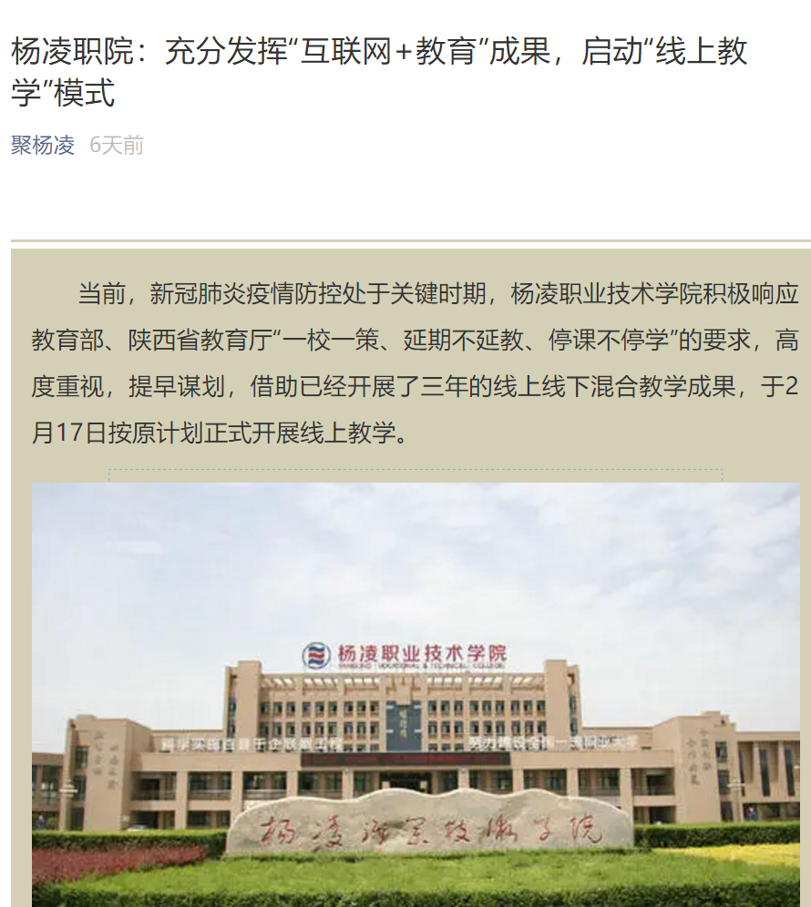 【聚杨凌】杨凌职院:充分发挥“互联网+教育”成果,启动“线上教学”模式