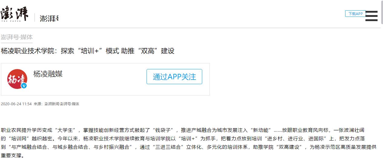 随着社会各行业的瞬息万变,技术发展的不断嬗变,行业的发展亟需人力的支撑,杨凌职业技术学院紧跟时代步伐,通过培训为人才成长“输血”,为校企融合发展“供能”,先后为全省乃至全国培养了一大批优秀技术人才。建设‘知识型、技能型、创新型’的行业应用型人才,成为杨凌职业技术学院发展的一个重要方向和中坚力量,必将有力推动“双高计划”行稳致远。