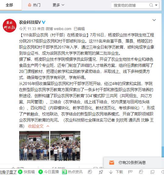 【农业科技报】111名职业农民(村干部)在杨凌毕业