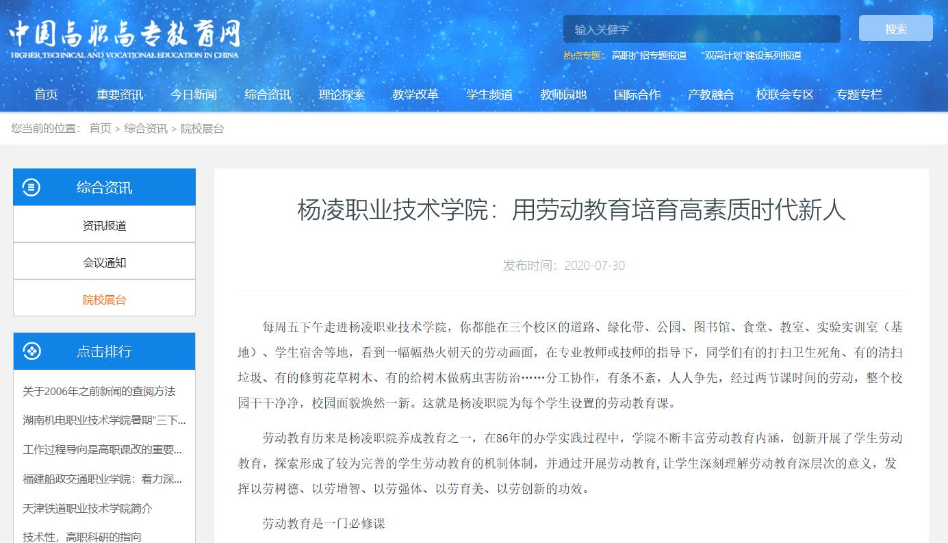 【中国高职高专教育网】杨凌职业技术学院:用劳动教育培育高素质时代新人