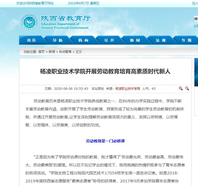 【陕西省教育厅】杨凌职业技术学院开展劳动教育培育高素质时代新人