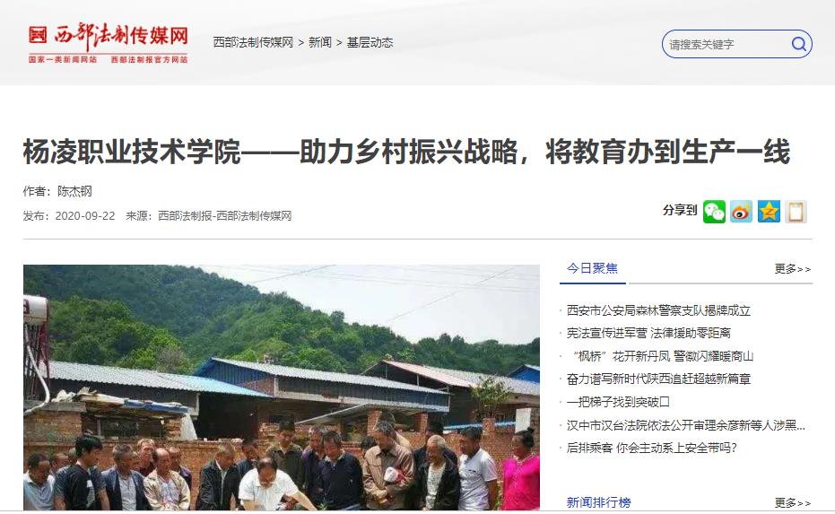 【西部法制传媒网】杨凌职业技术学院——助力乡村振兴战略,将教育办到生产一线