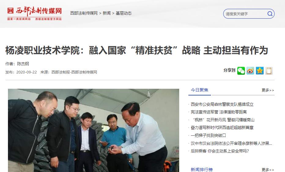 【西部法制传媒网】杨凌职业技术学院:融入国家“精准扶贫”战略 主动担当有作为