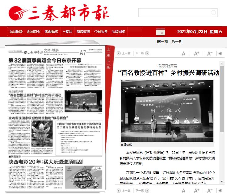【三秦都市报】杨凌职院开展“百名教授进百村”乡村振兴调研活动