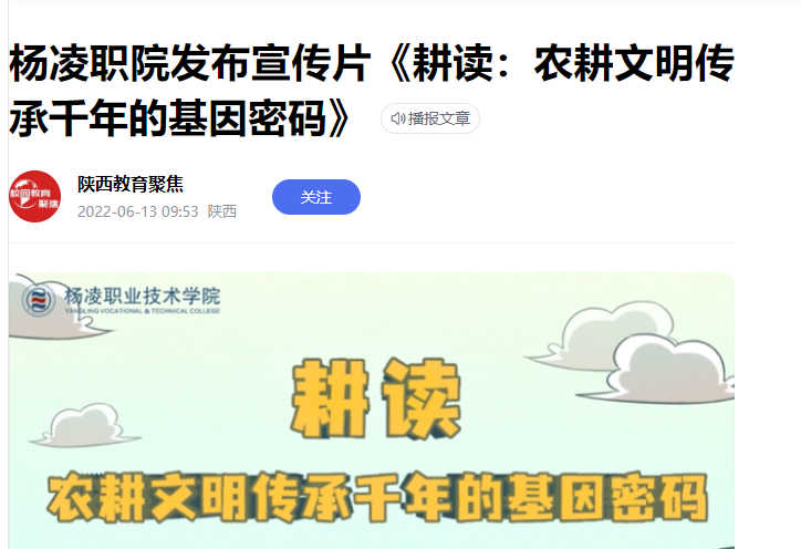 【陕西教育聚焦】杨凌职院发布动画宣传片《耕读:农耕文明传承千年的基因密码》