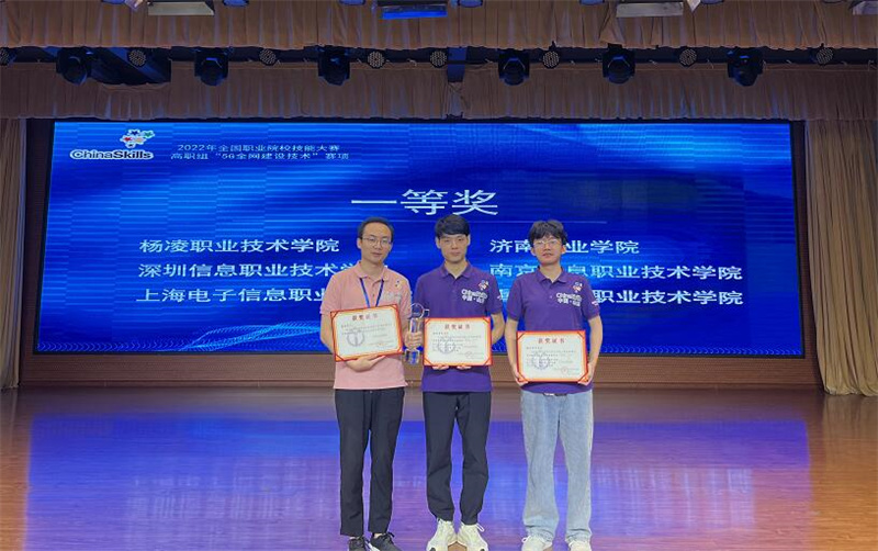 阳光讯(陈阳 崔晓 记者 赵小康)8月22日至23日,2022年全国职业院校技能大赛高职组“5G全网建设技术”赛项在济南职业学院举办,来自全国28个省、56支代表队、112名选手参加了比赛。经过8个小时的激烈比拼,杨凌职业技术学院信息工程学院学生郑嘉昊、曹文森以总分排名全国第一的成绩,荣获一等奖第一名,取得杨凌职院自参赛以来历史最好成绩,指导教师康晋、陈高锋荣获大赛优秀指导教师奖。
