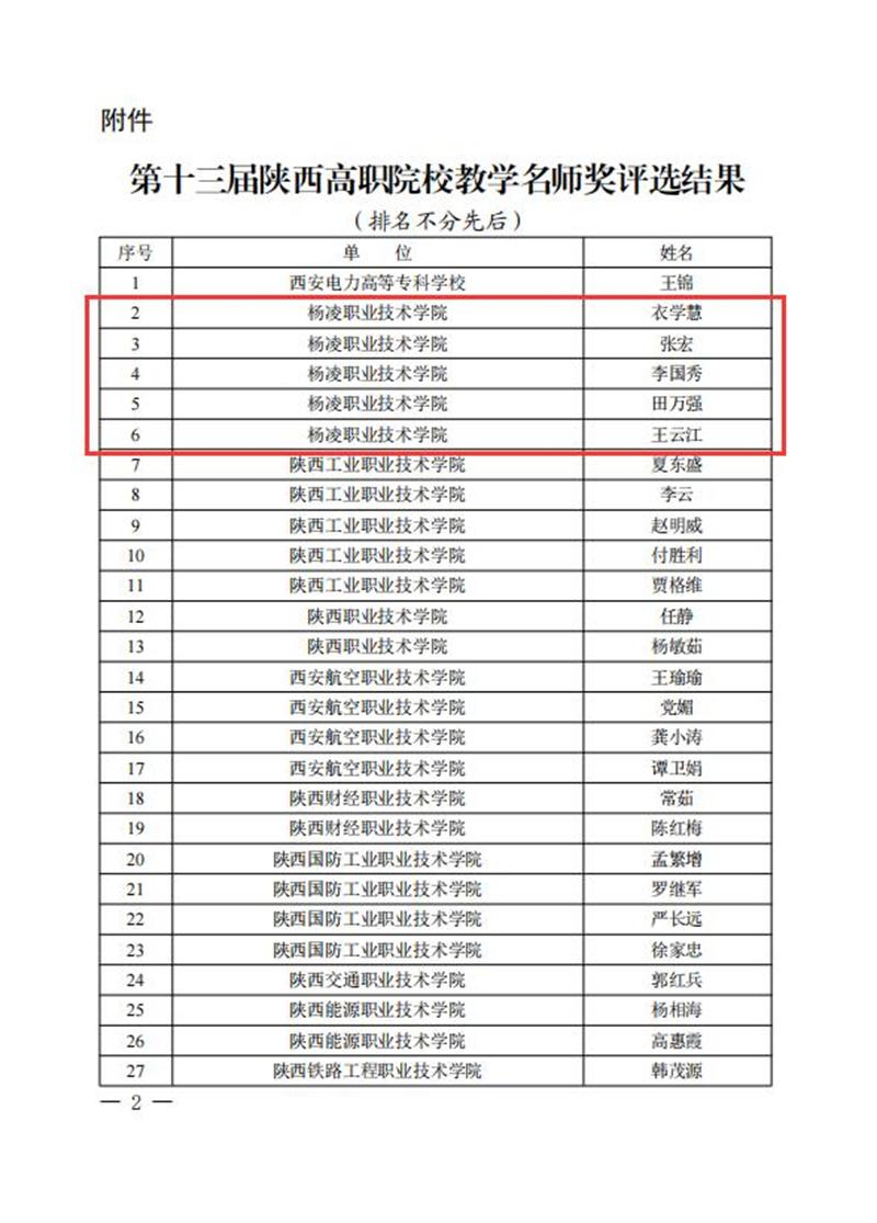【今日头条】杨凌职院5位教授获评陕西高职院校教学名师奖