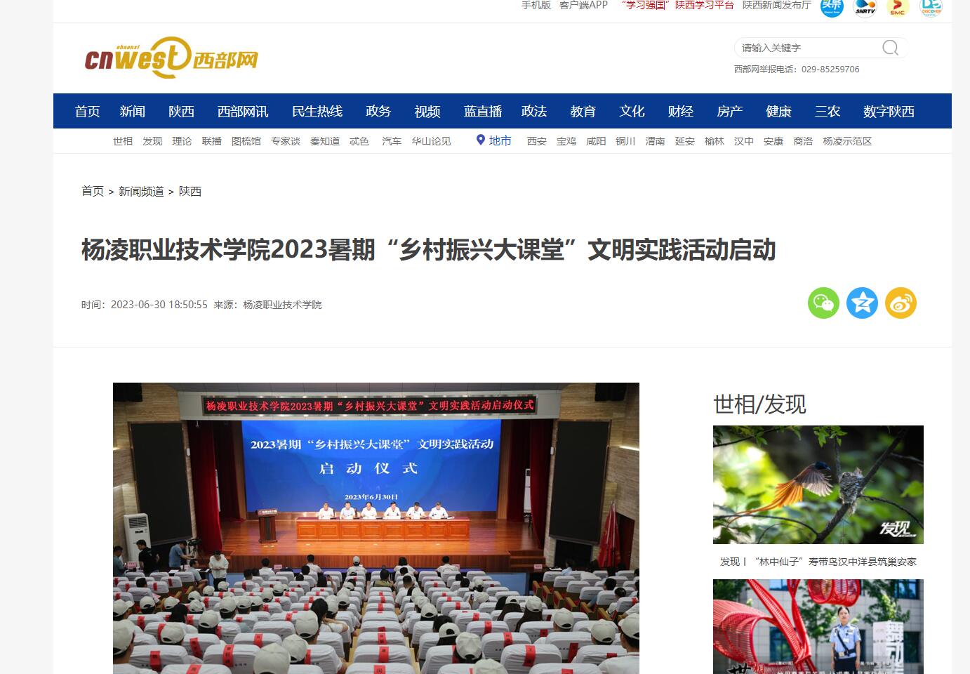 【西部网】杨凌职业技术学院2023暑期“乡村振兴大课堂”文明实践活动启动