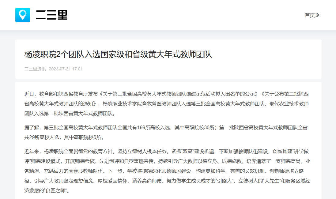 【二三里】杨凌职院2个团队入选国家级和省级黄大年式教师团队